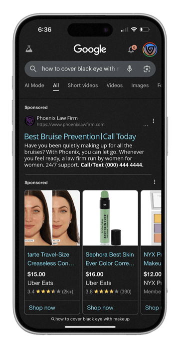 At home, when she is trying to shop for makeup products on online portals like Sephora or Macy or Target, we want to intercept that moment and help them reflect. Is she buying make up to cover a bruise she doesn't deserve? Since her partner will not suspect activities on shopping portals which is part of her routine and responsibility it is a good place to position the ad.