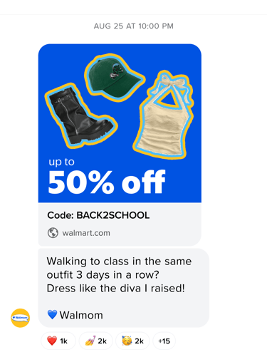 Make a campaign that encourages students going back to college to think that Walmart is cool and choose it over Amazon.